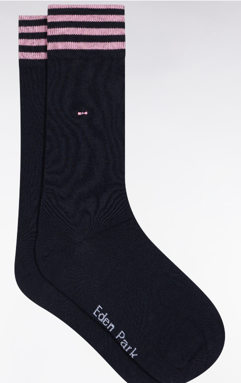 Boxer en jersey de coton marine à finitions rayées